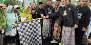 Peserta Jalan Sehat Santri Sarungan PCNU Kota Kediri menempuh jarak 4 Km menyemut hingga finish.