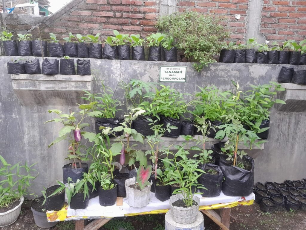 Pertama sampah organik berasal dari daun daunan ini bisa kita olah jadikan kompos. Hasilnya untuk memupuk tanaman dikawasan. Seperti untuk memupuk tomat, cabai, terong, brokoli dan kangkung.Sekarang di wilayah RT 26 sudah membentang penuh tanaman sayuran.