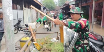 Jelang HUT TNI ke 80, Koramil 0809/02 Pesantren bersama Lembaga Lintas Sektor Bersihkan Pasar Pahing.