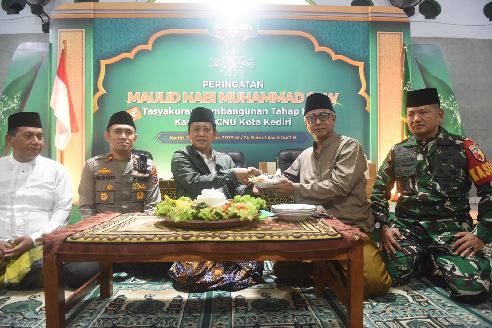 Gus Qowim hadiri Maulid Nabi Muhamad SAW dan Tasyakuran Pembangunan Kantor PCNU tahap 2, perkuat sinergi untuk Kota Kediri MAPAN ditandai potong tumpeng.