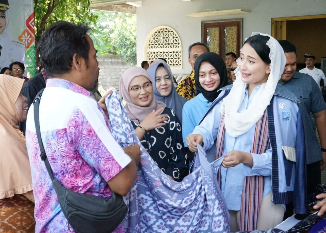 JENDELA INFORMASI, KEDIRI – Wakil Menteri Perdagangan (Wamendag) Dyah Roro Esti Widya Putri mencoba secara langsung proses menenun wastra asli Kota Kediri yakni tenun ikat. Didampingi oleh Wali Kota Kediri Vinanda Prameswati, Dyah Roro Esti tampak antusias mengikuti setiap tahapan proses menenun yang bertempat di Sentra Tenun Ikat Medali Mas Bandar Kidul, Jumat (18/07/2025).